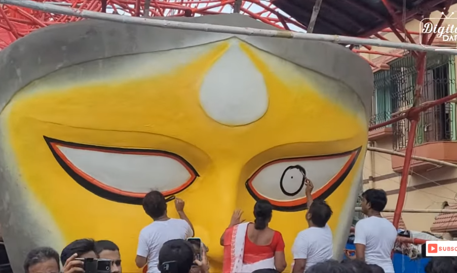 মহালয়ার সকালে কুমারটুলি সার্বজনীনে (Kumortli Sarbojonin) মায়ের চক্ষুদান